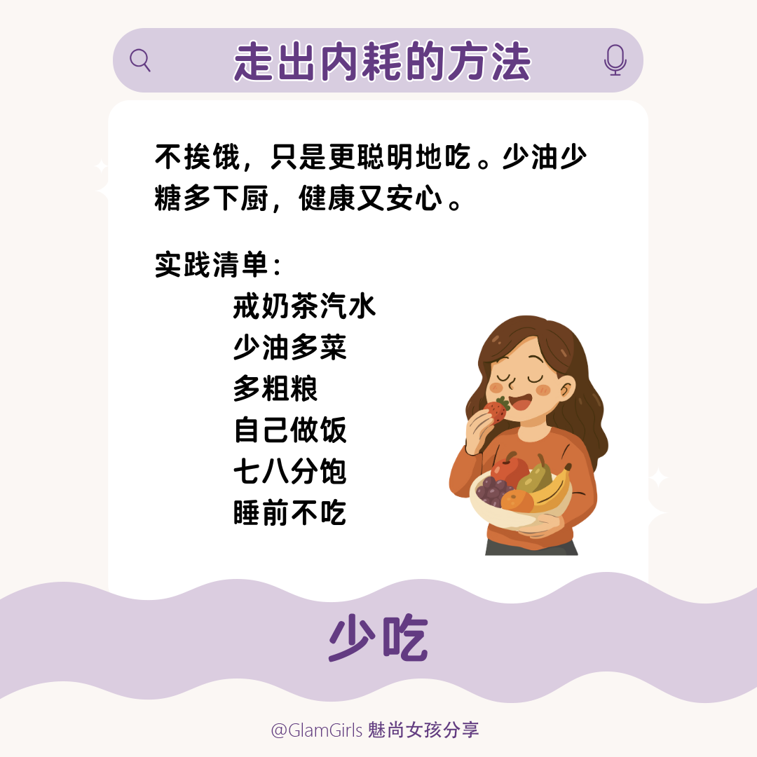 💡少吃:别用过度进食安慰情绪,身体轻,心也轻。